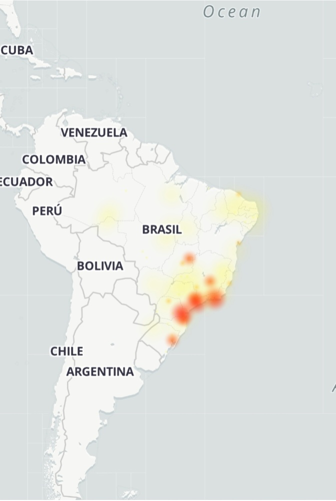 Embora a interrupção tenha um caráter global, o mapa de calor de problemas do Downdetector indica que o Brasil foi desproporcionalmente impactado. Grandes aglomerados de relatos de falha se concentraram em território brasileiro, com destaque para as capitais e regiões metropolitanas do Sudeste (São Paulo e Rio de Janeiro) e do Nordeste (Salvador e Recife).